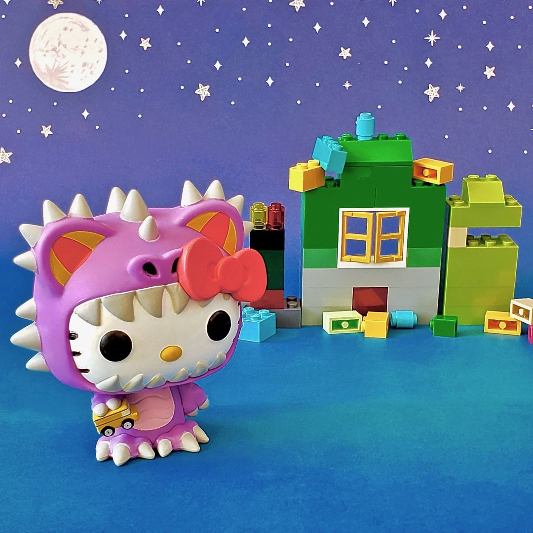 In the Funko POP! Kaiju series, Hello Kitty is dressed as different monsters from this Japanese film genre that features giant monsters (think Godzilla). Here, Hello Kitty is a cute purple Kaiju creating chaos on land!