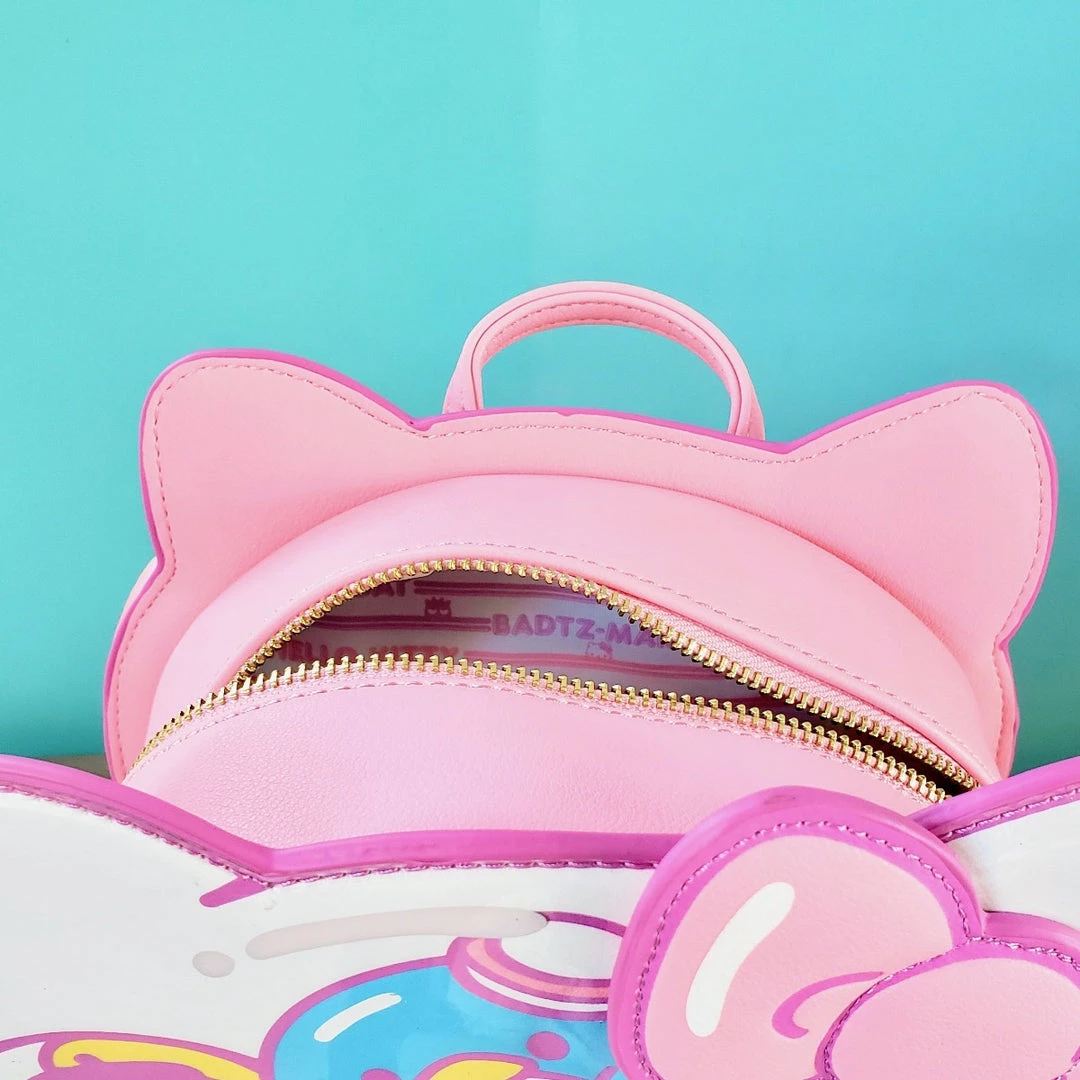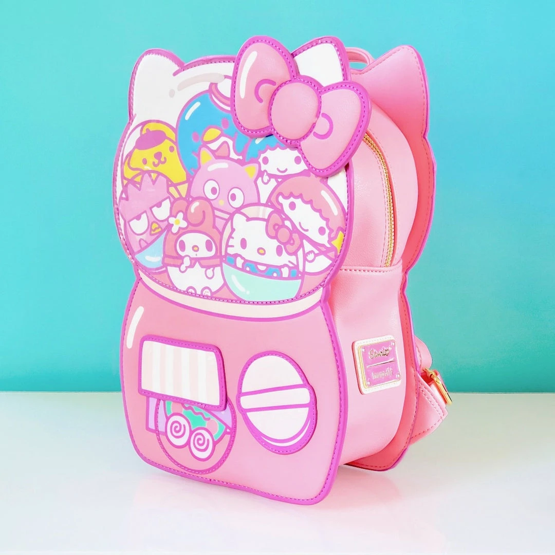This super kawaii backpack is sold out in most places, but we have it! Loungefly and Sanrio collaborated to create a bubblegum pink, Hello Kitty shaped gashapon (aka capsule toy) machine backpack. There’s a clear vinyl layer on part of the design to mimic the top display of a gashapon machine where the capsules are stored. The backpack is pastel-themed with shiny gold details.