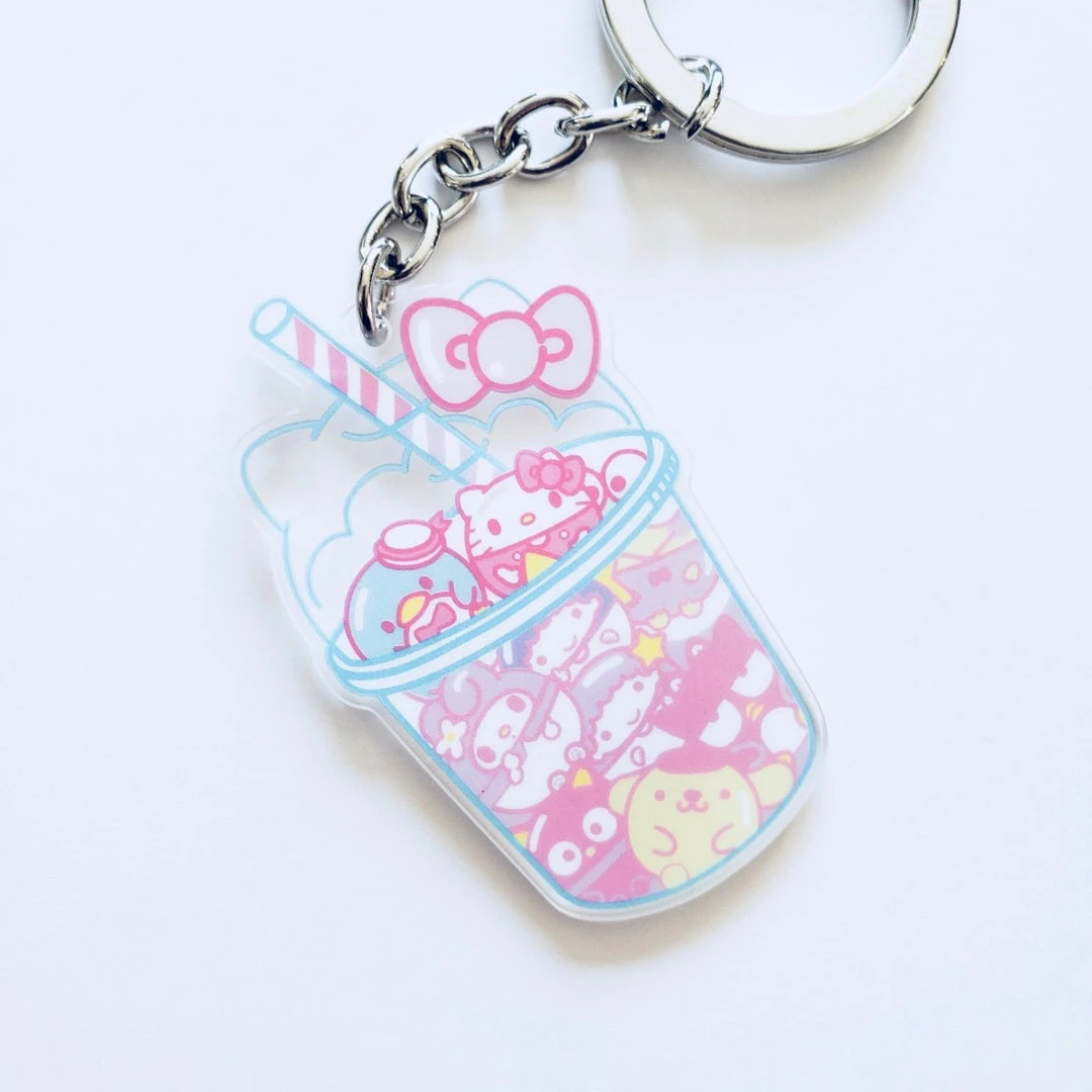 Thirsty for some cuteness in a cup? How about a Loungefly Hello Kitty Slush Drink acrylic keychain with little Sanrio bubble characters (we think they look a lot like boba)! Cute food is just too hard to resist (๏ฝกโฅโฟโฅ๏ฝก)