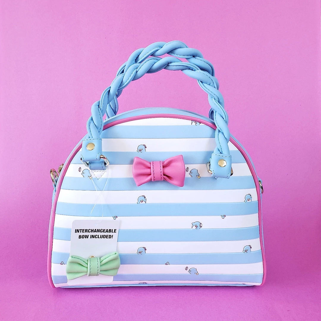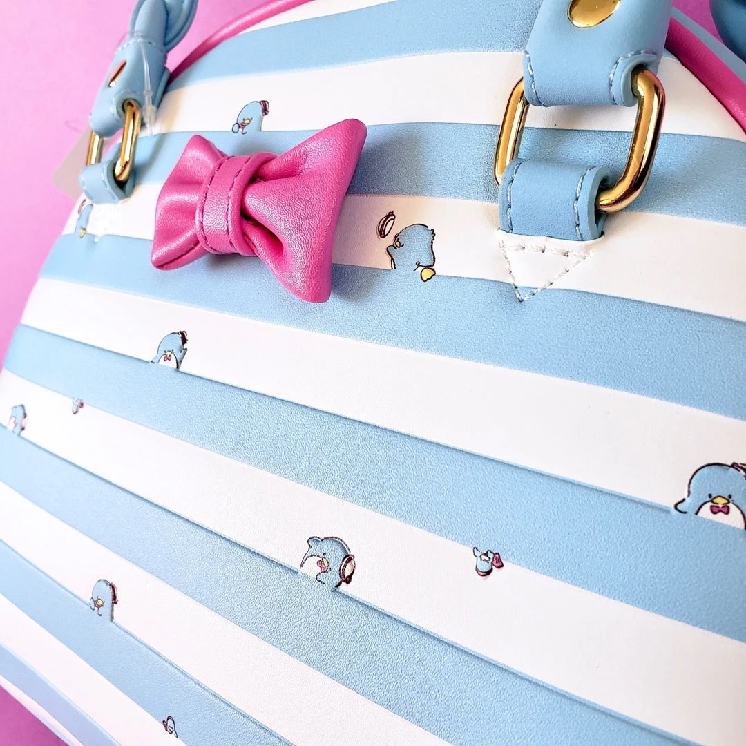 Tuxedosam (ใฟใญใทใผใใตใ or Takishฤซdosamu in Japanese)ย is Sanrio’s beloved penguin, who loves to eat and has great fashion sense! He is here to help you accessorize in kawaii style with Loungeflyโs Sanrio Tuxedosam Crossbody. Tuxedosam loves to collect bow ties (he owns 365 of them!), which is why this bag comes with an alternate bow tie you can snap on. This bag is perfect for summertime outfits.