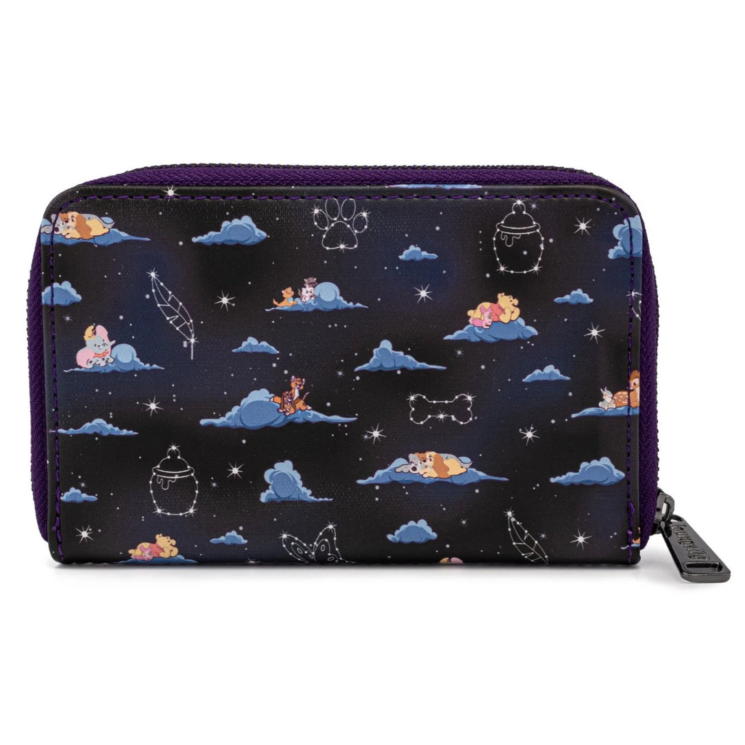 Itβs a dream come true with the Loungefly x Disney Classic Clouds AOP Zip Around Wallet. Among the night sky and the fluffy clouds are some of Disneyβs classic characters looking at the twinkling constellations. You can find Bambi, Pooh, and Dumbo, just to name a few. Make it a complete set with the matching Classic Clouds wallet (sold separately).