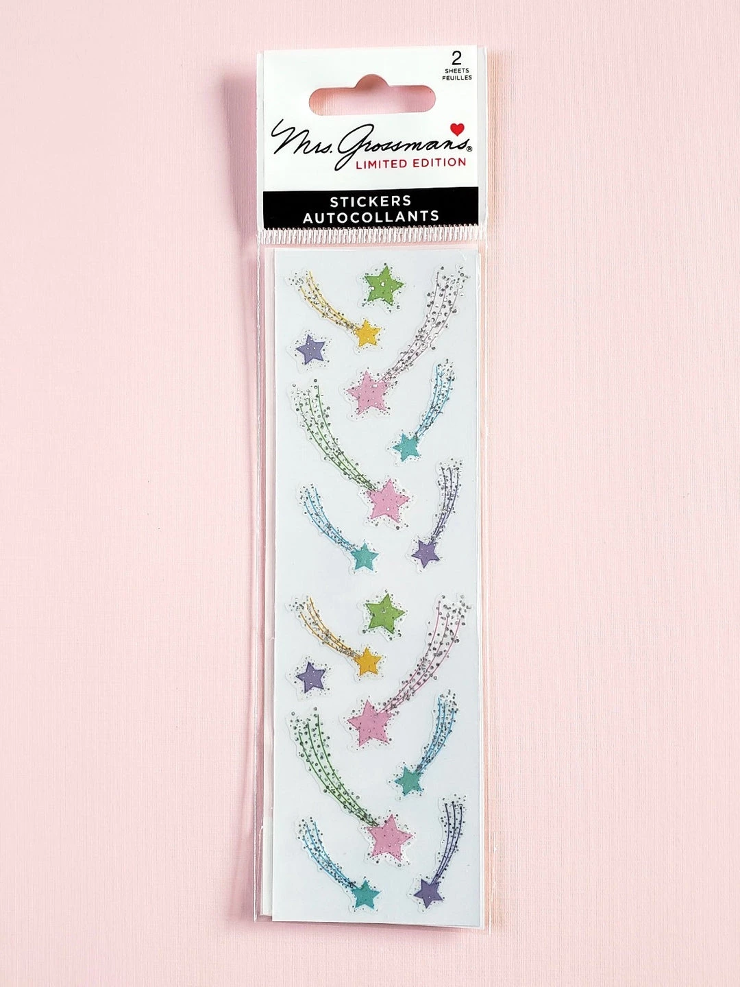 - Shimmering, pastel shooting stars add a touch of class and cuteness on everything from notebooks to gift bags!