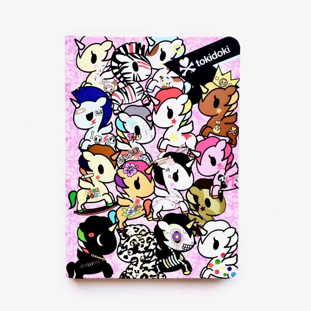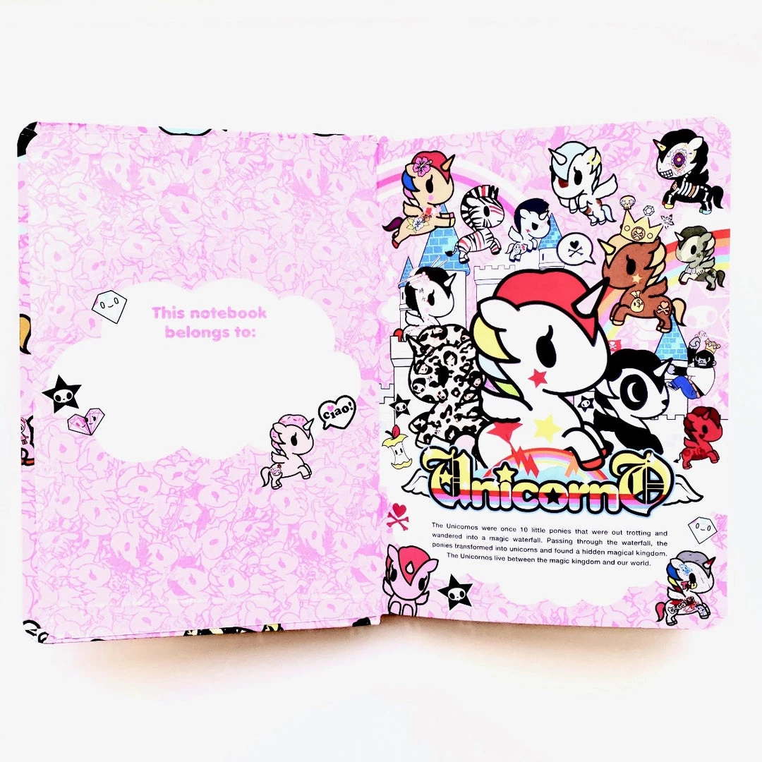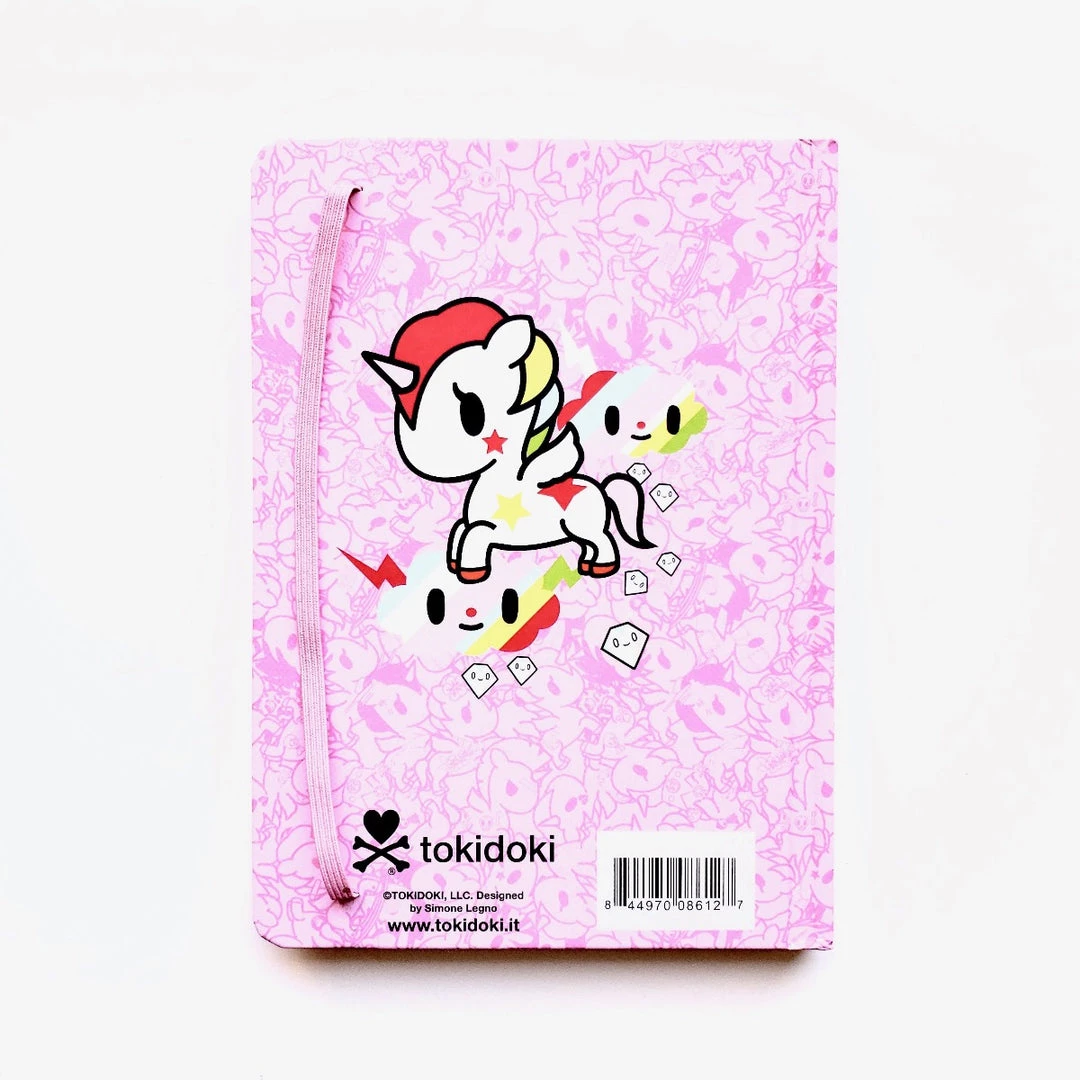 Add a touch of cuteness to your home, school, or office with our Unicorno Stationery! The tokidoki Hard Cover Notebook comes with 100 blank white pages, a ribbon bookmark, and elastic strap.Β Criminally cute Unicornos decorate the pink hard cover.Β This rare design is from tokidoki’s earlier stationery line!
