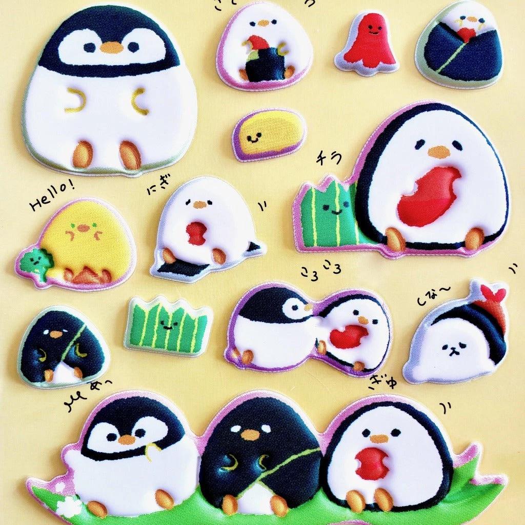 We think these penguin-shaped sushi and onigiri stickers are just the cutest! Quality puffy stickers for papercrafts, scrapbooking, journaling, snail mail, or just to add to your collection.