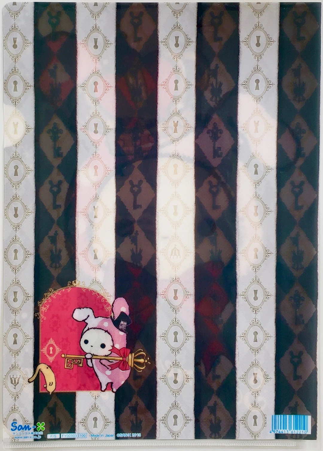 Need kawaii folders to keep you organized? This plastic file folder is both cute and durable. Front side features the crowned Shappo and, on the back side, Shappo is holding a royal key. Single pocket folder style (2 sealed edges on long and short sides). The Secret Anniversary theme is a result of a collaboration between Sentimental Circus & Alice and the Pirates.