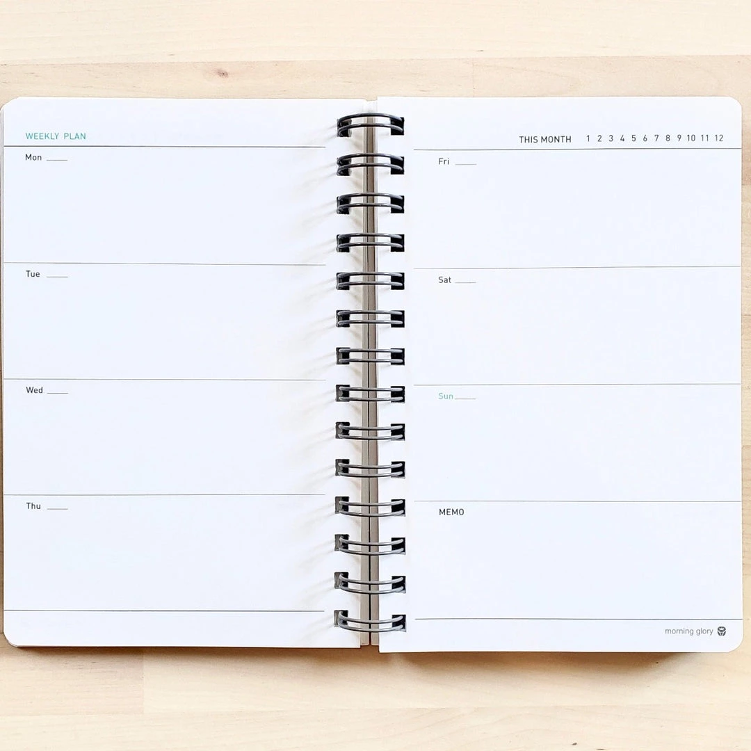 A quality planner from Morning Glory with 100+ pages, including a year-plan page, monthly schedule pages, weekly pages, and memo pages for notes! This adorable hardcover planner is spiral bound with an elastic band closure. Illustrated on the pink cover is a kawaii kitty perched on a cat tower =^._.^= ∫