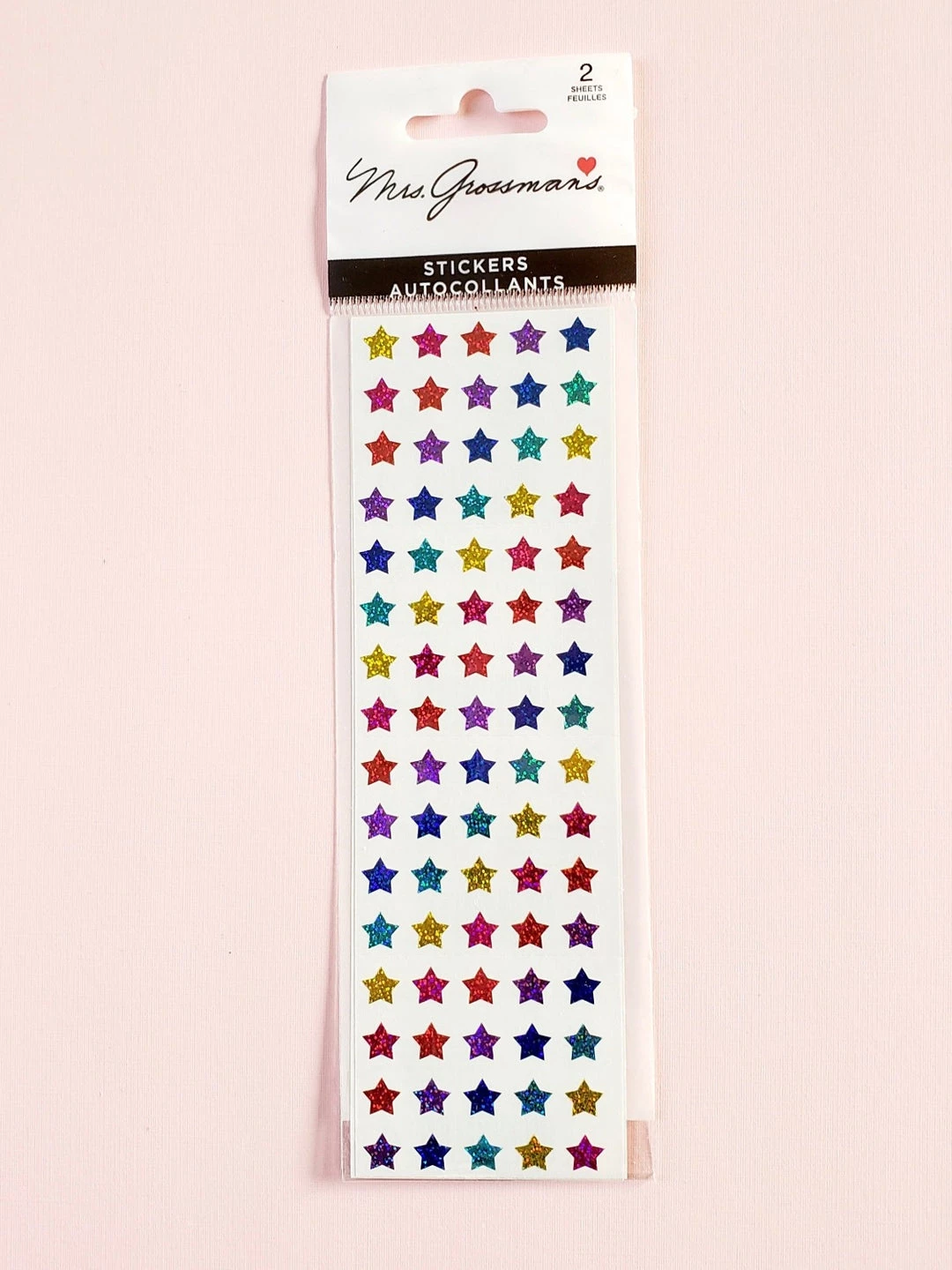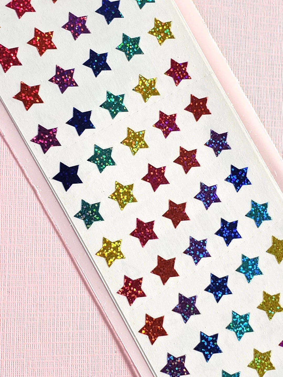 - Sweet, sparkly little star stickers in five different shimmering colors!