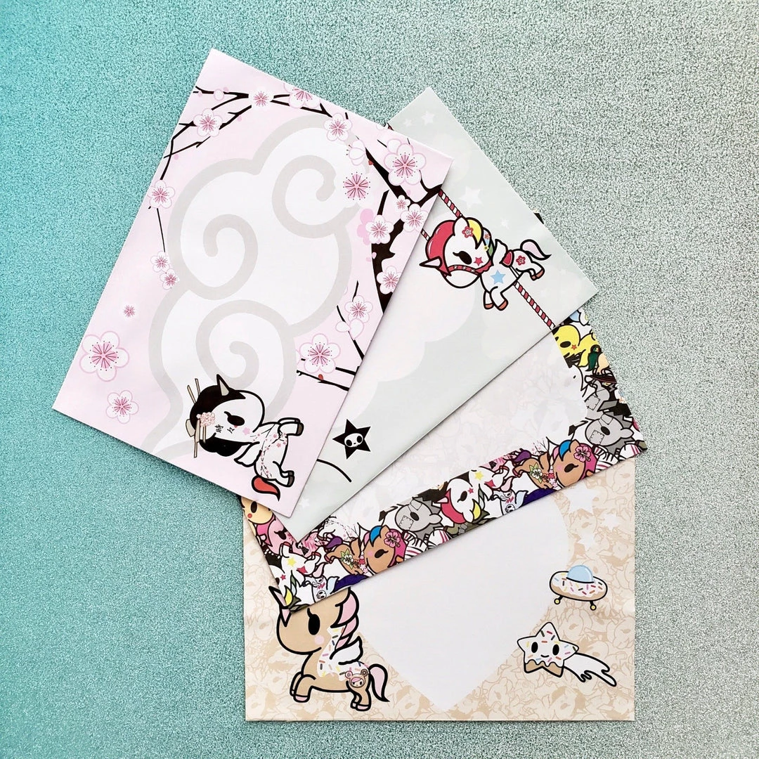 Write criminally cute letters and notes with the tokidoki Unicorno Stationery Kit! Each kit comes with 16 mix and match stationery sheets, envelopes, and stickers, and features some of your favorite Unicornos. There are four different designs for both envelopes and stationery sheets. This set is one of the first designs from tokidoki’s stationery line!