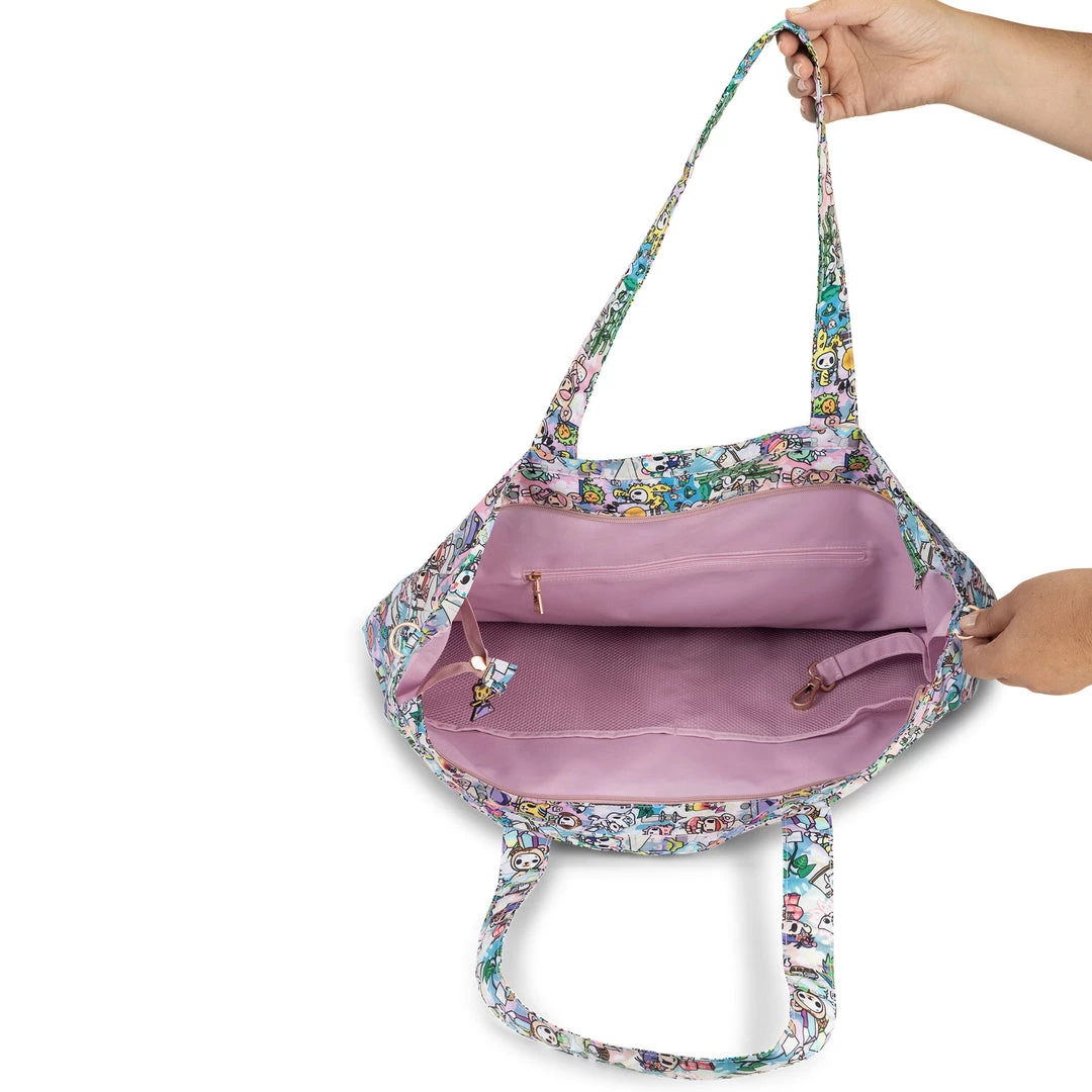 This ultralight tote is the perfect choice for the mom-about-town. Roomy and spacious, this bag can accommodate large laptops, notebooks and anything else you want to stow inside. The top is zippered, so there is no need to worry about your things falling out if your bag topples over in transit. Multiple storage pockets make it easy to get organized so that nothing gets lost in the bottom of the bag. This lightweight tote is comfortable and easy to carry, wherever the day takes you.ย