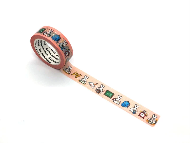 This washi tape with gold foil accents, features Lil’ in a cute school theme with backpacks, rulers, chalkboards, and more!
