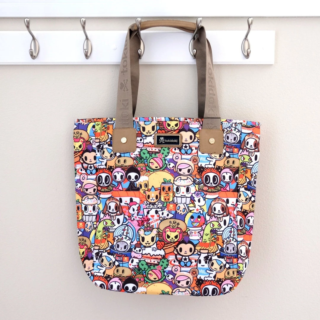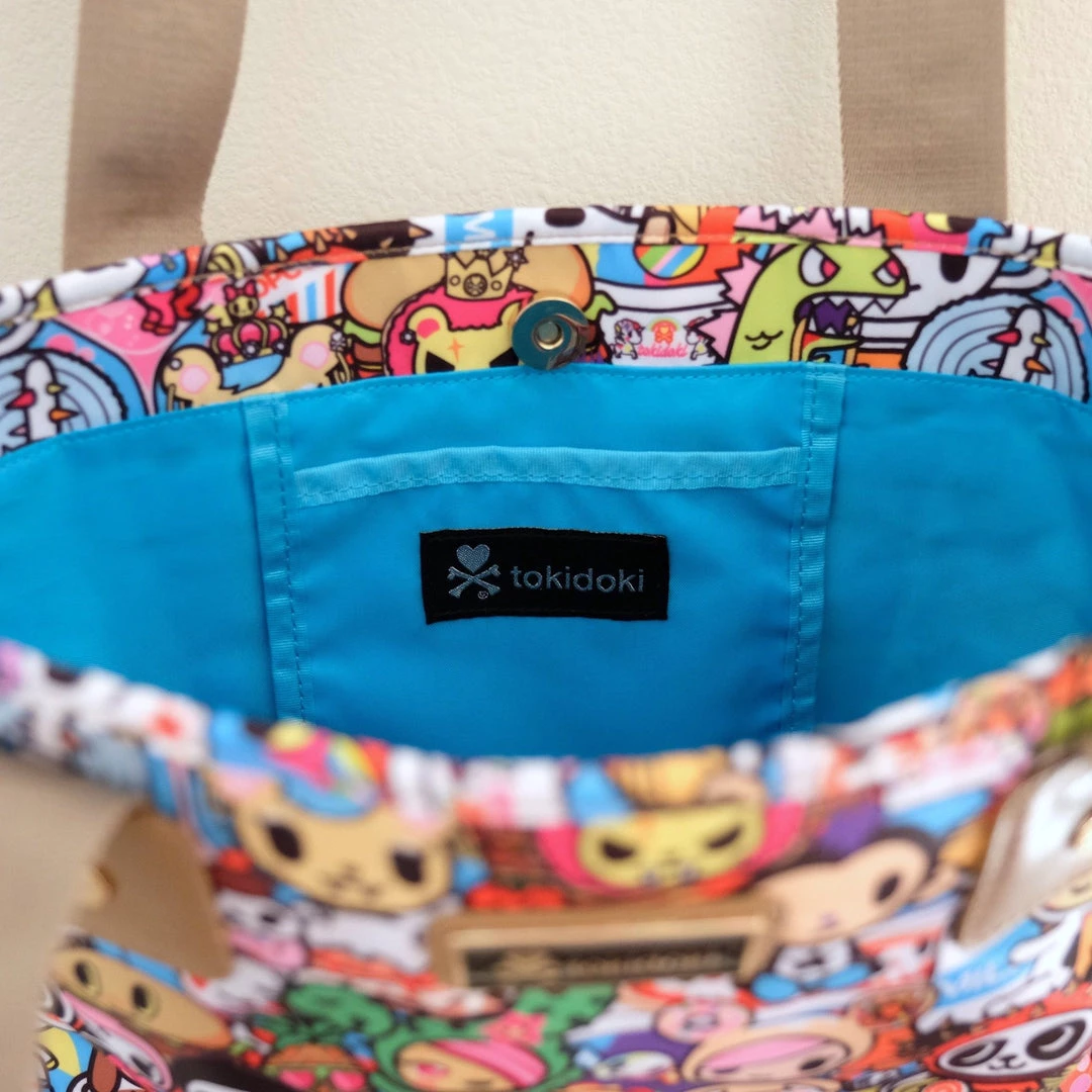 Hard-to-find Food Collection by tokidoki! There is one sizable compartment with a magnetic closure, lined in bright aqua blue. Inside is one small side pocket.Β With pretty gold-tone detailing, this shopper tote will make you hunger for more!