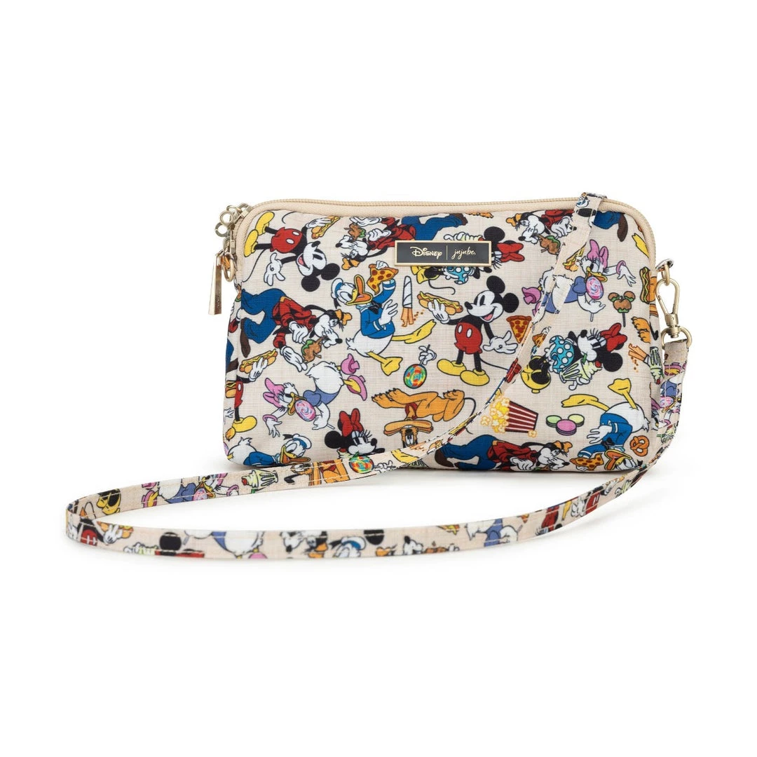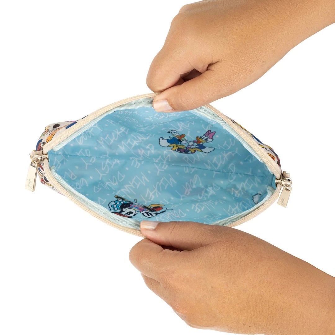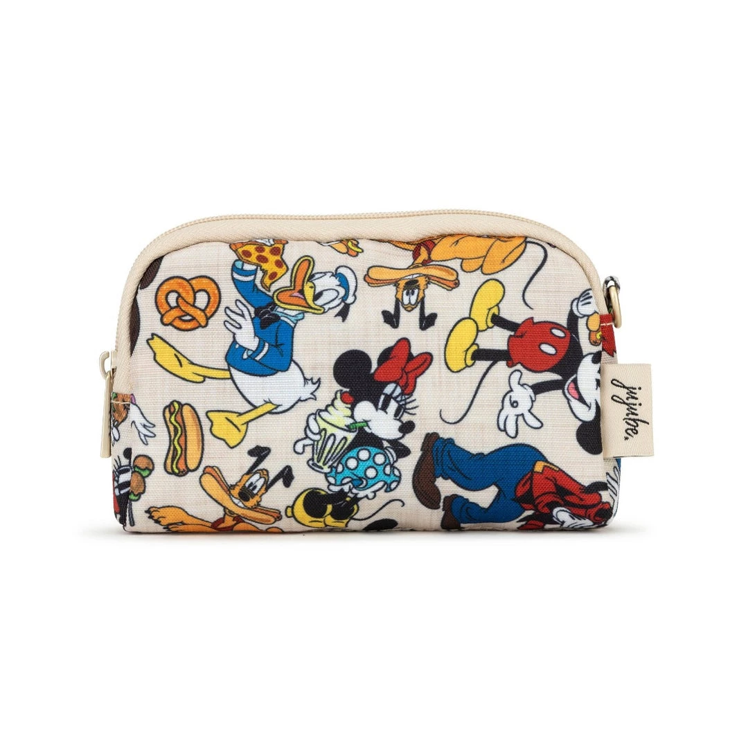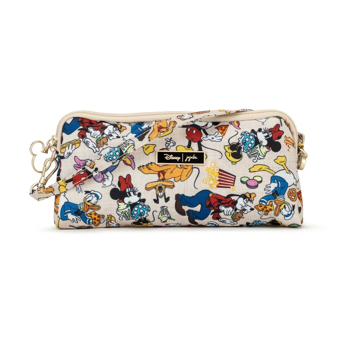 Disney’s Sensational Six meets Sensational Snacks! Sketches of Mickey Mouse and friends surrounded by a scrumptious smorgasbord decorate this Disney x JuJuBe print! Designed by longtime Disney illustrator, Jeff Shelly, his bright and colorful art brings deliciousness to life upon linen colored Chromatics fabric. Mickey, Minnie Mouse, Donald Duck, Daisy Duck, Goofy, and Pluto are all enjoying yummy foods in this design! Peek inside to spy a dusty blue lining printed with the name of each snacker along with sweet vignettes of the darling duos. Accented with satin gold hardware, this delicious print will satisfy your cravings!
