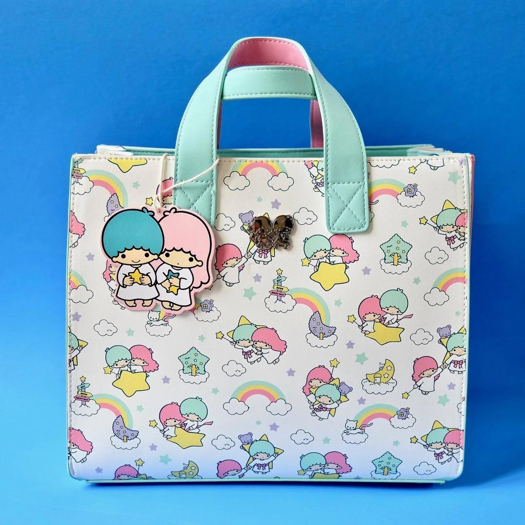 ใชใใซใใคใณในใฟใผใบ ย or Ritoru Tsuin Sutฤzu in Japanese) Kiki and Lala of the Omoiyari Star are here to bring light and joy into your Sanrio collection! Kiki and Lala play amongst pastel rainbows and clouds in Loungefly’s super cute Little Twin Stars Rainbow Cloud Crossbody Bag.ย