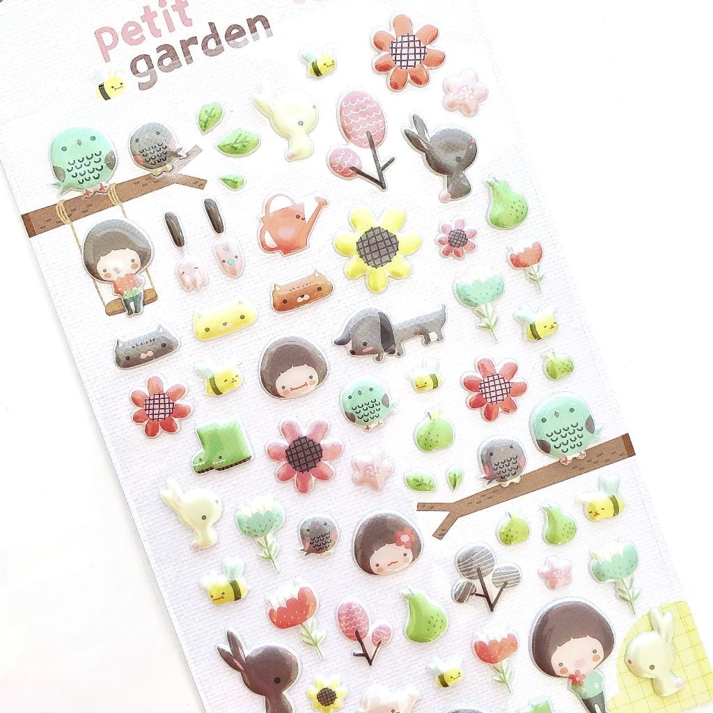 Enjoy these cute, puffy stickers with a charming garden motif! Perfect for cute accents in scrapbooking, journaling, and other crafts. High quality Korean stickers.