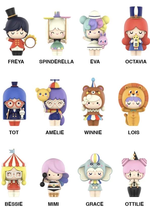 POP MART and Momiji collaborated together to create the Circus blind box collection.ย These adorable collectible vinyl dolls are a little smaller than the original Momiji but still just as cute!ย