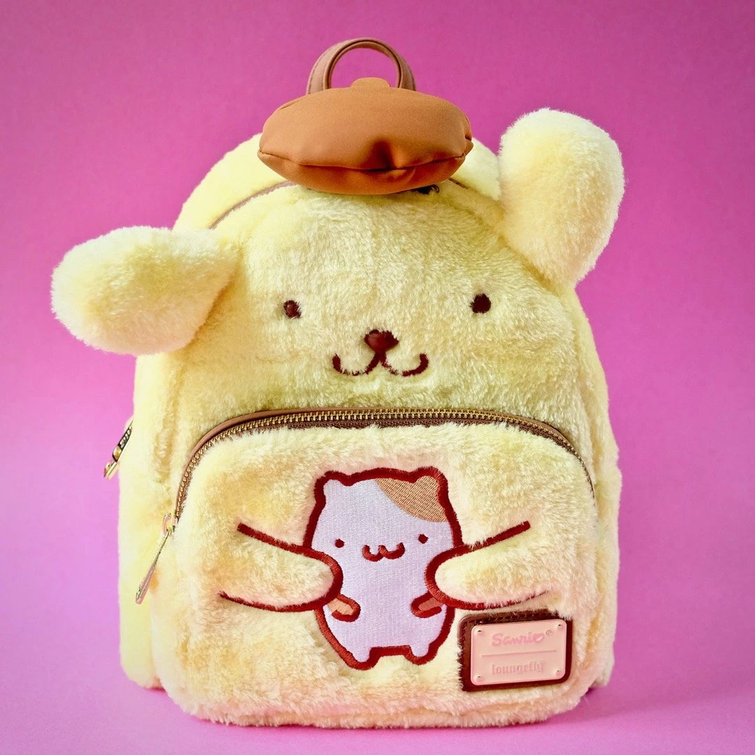 γγ γγ γγͺγ³ or Pomupomupurin), Sanrio’s adorable golden retriever, on adventures with you! Heβs cute and fluffy with his brown beret and, along with his hamster friend Muffin, is ready for anything! The Pompompurin Cosplay Mini Backpack is plush and has a button face. This bag is a fun accessory that doubles as a great cosplay companion.