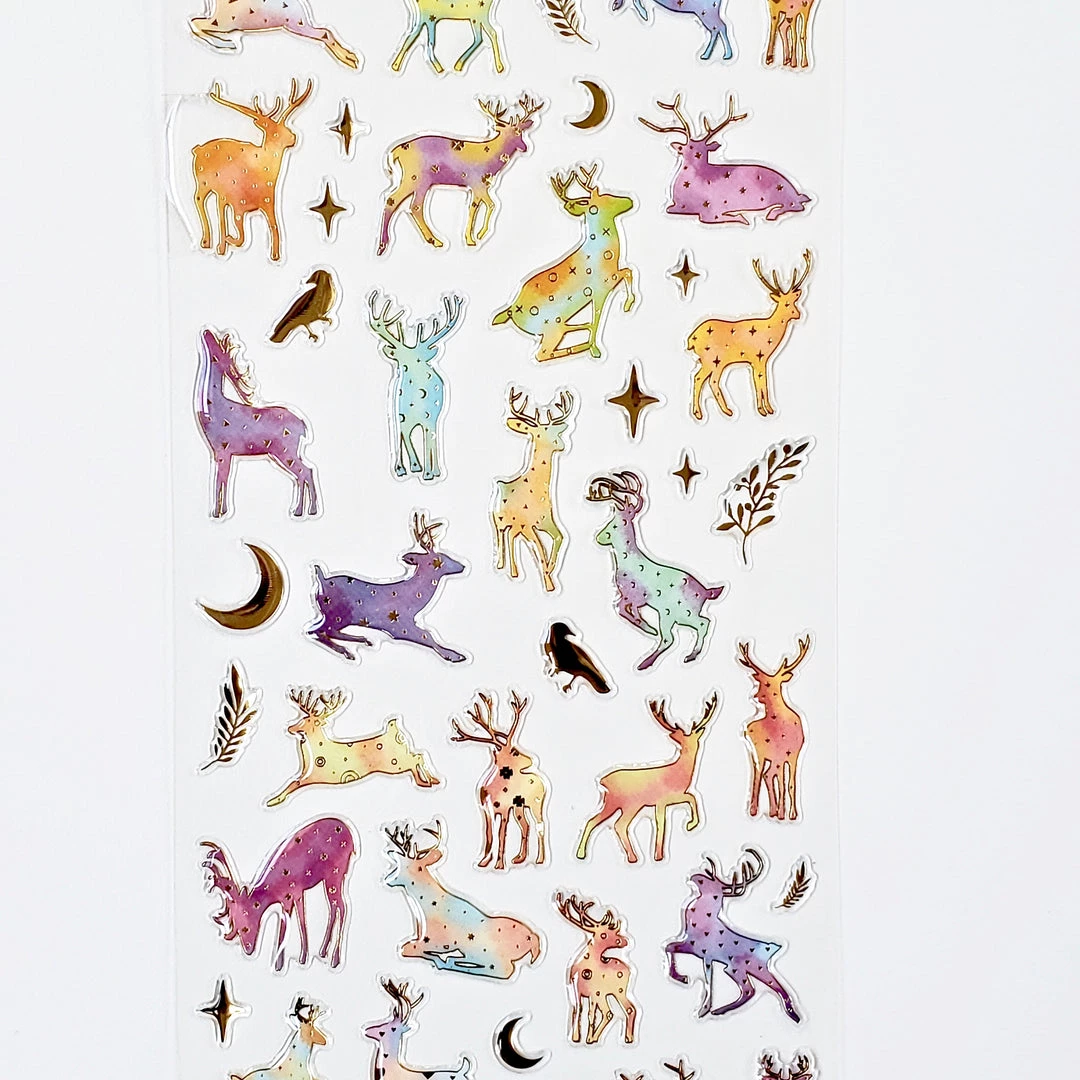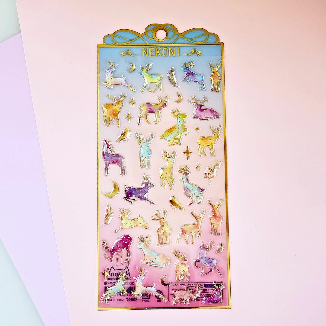 Add pretty details to your project with our Nekoni Crystal Gel deer stickers! These raised stickers are translucent with gold details and in jewel toneΒ colors.