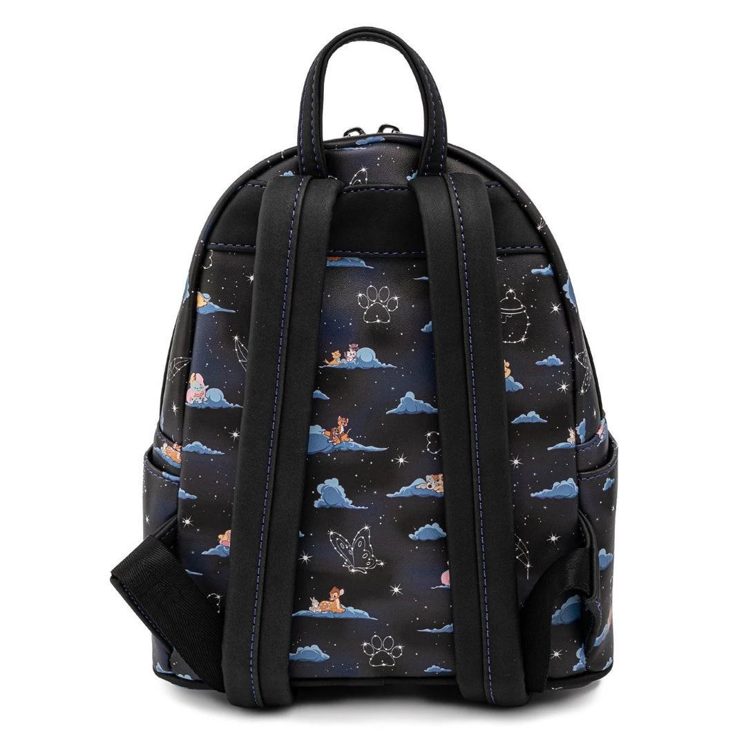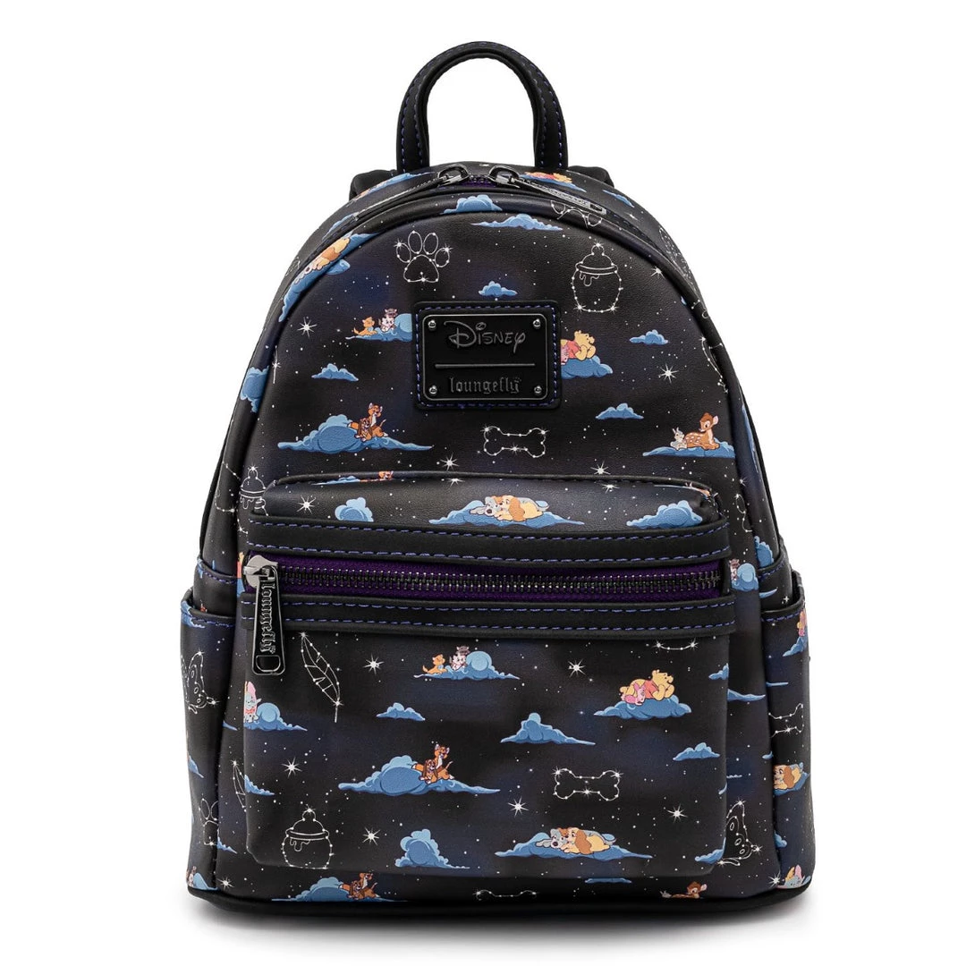 Itβs a dream come true with the Loungefly x Disney Classic Clouds AOP Mini Backpack. Among the night sky and the fluffy clouds are some of Disneyβs classic characters looking at the twinkling constellations. You can find Bambi, Pooh, and Dumbo, just to name a few. This dreamy bag perfectly matches the Classic Clouds wallet (sold separately).