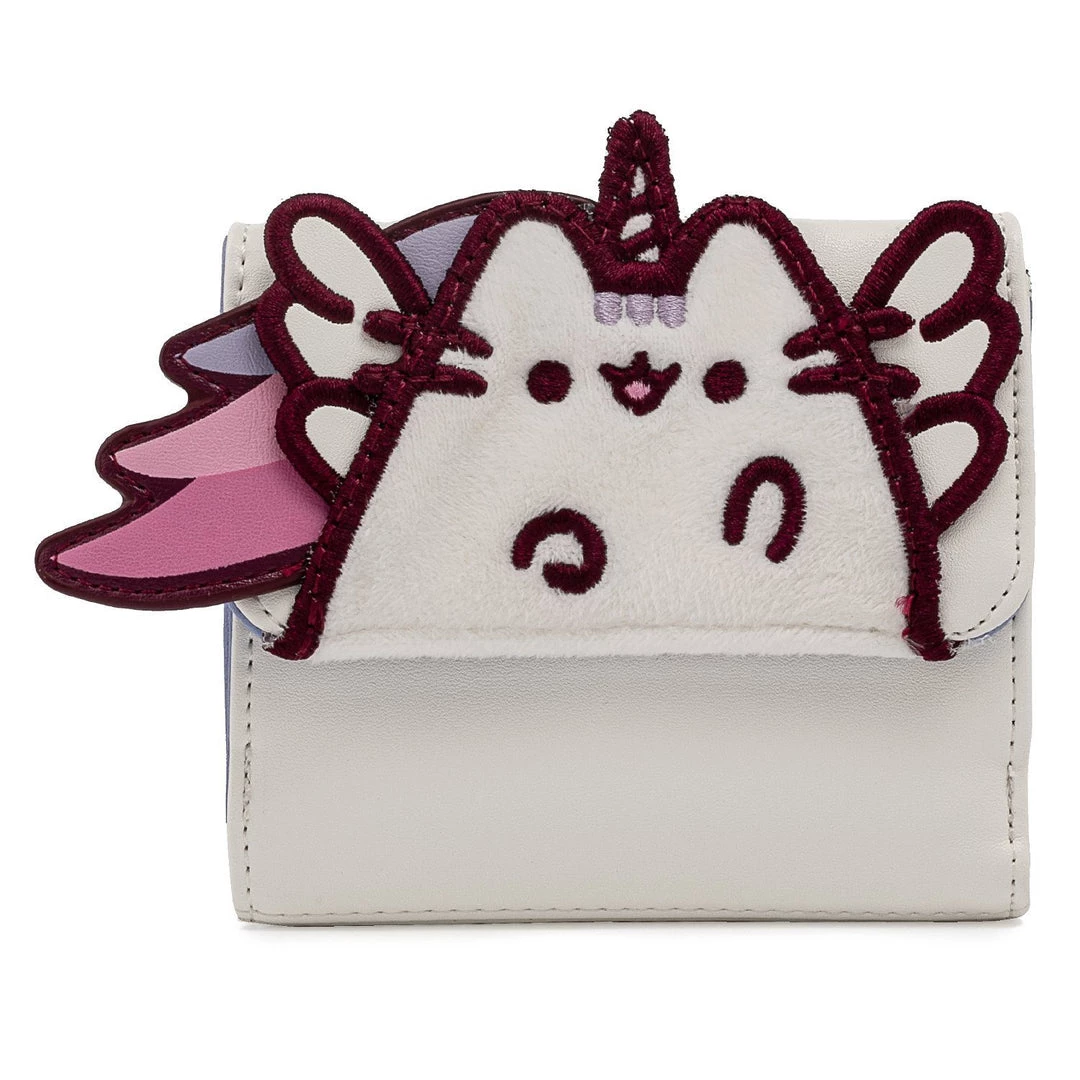 Just when you thought Pusheen couldn’t get any cuter, check out the magical Super Pusheenicorn! Super Pusheenicorn emerges when you combine Pusheen with a winged unicorn. Add a little cuteness to your bag with this soft Loungefly wallet. Check out the embroidered purple crescent moon on the back! Super ka-wa-ii!Β (β§β‘β¦)β‘
