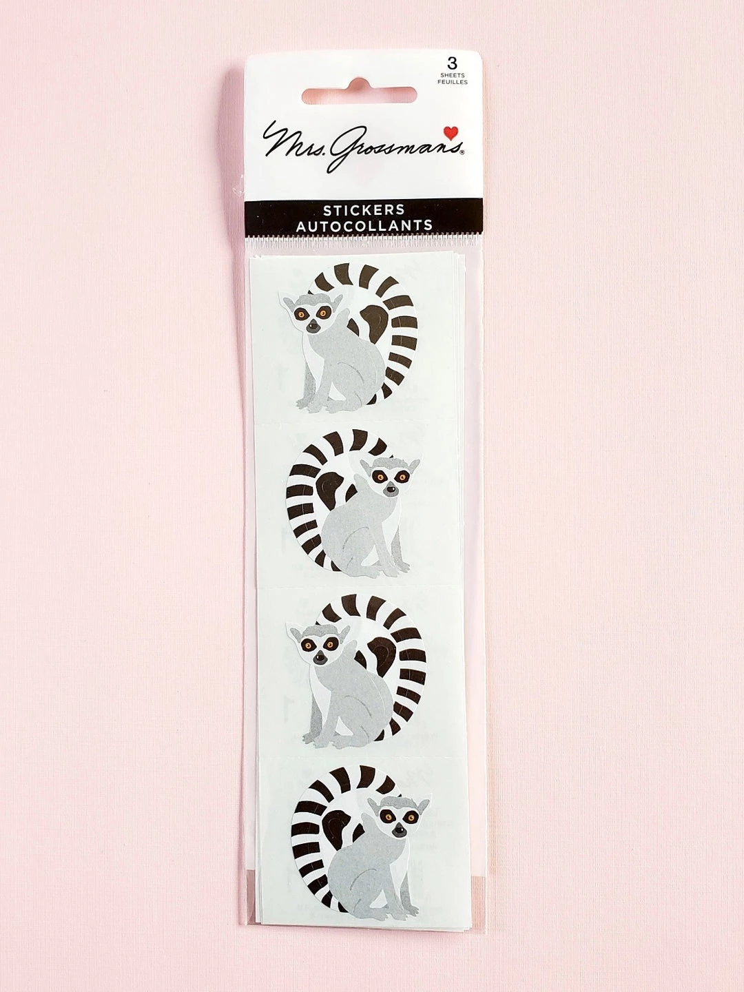 - Adorable lemur stickers designed in classic Mrs. Grossman’s style