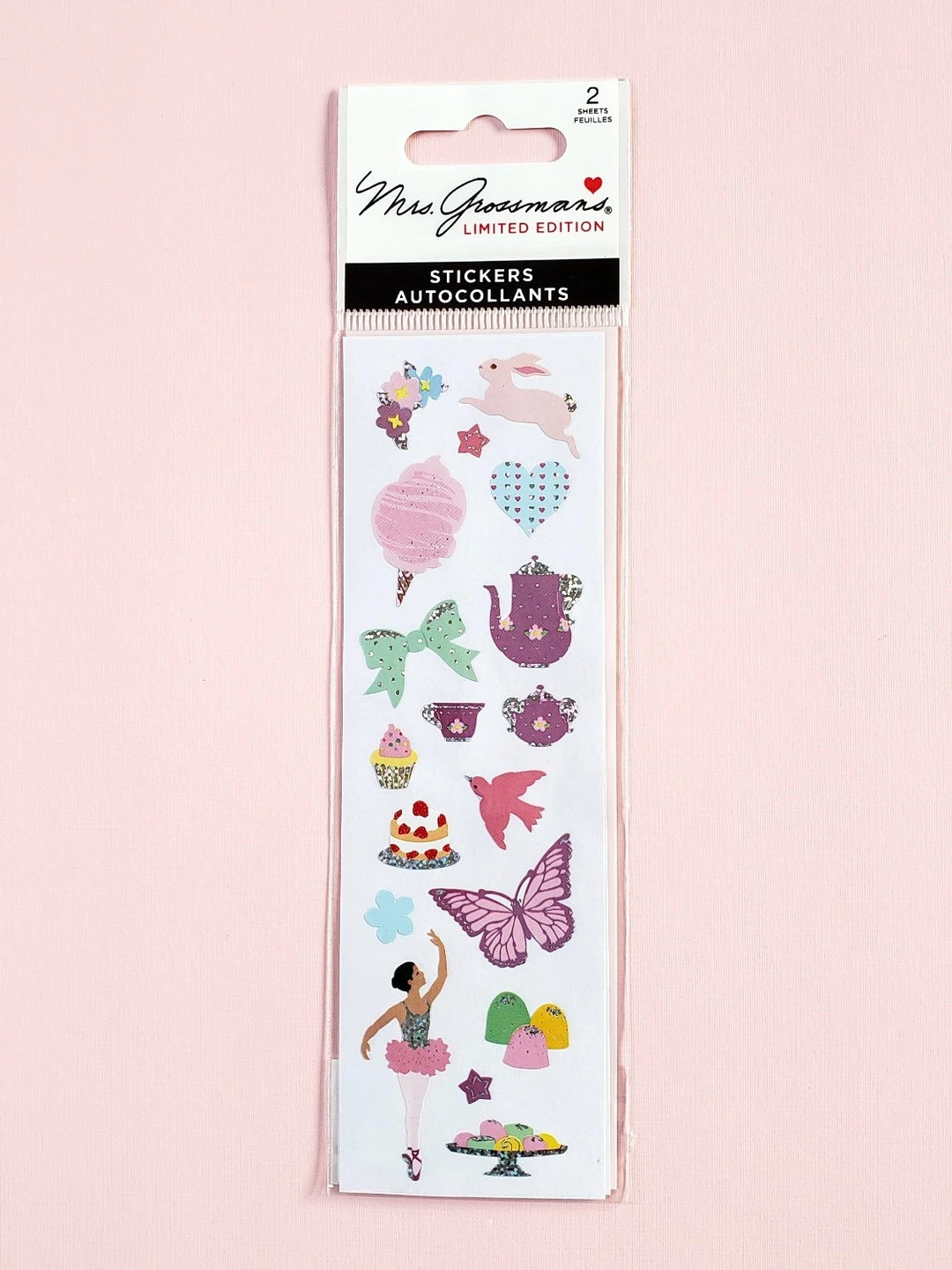 - Classic designs of a bunny, heart, sweets, ballerina, and a tea set, all with reflective details