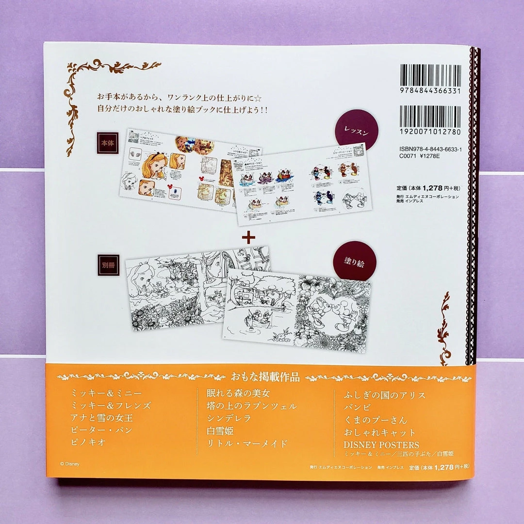 Welcome to the world of Disney dreams with our adult coloring that also includes coloring technique tips! Japanese illustrator Inko Kotoriyama collaborates with Disney to create this magical coloring book. A neat detail is that you can also detach the coloring book section inside from the lesson book if you wish!