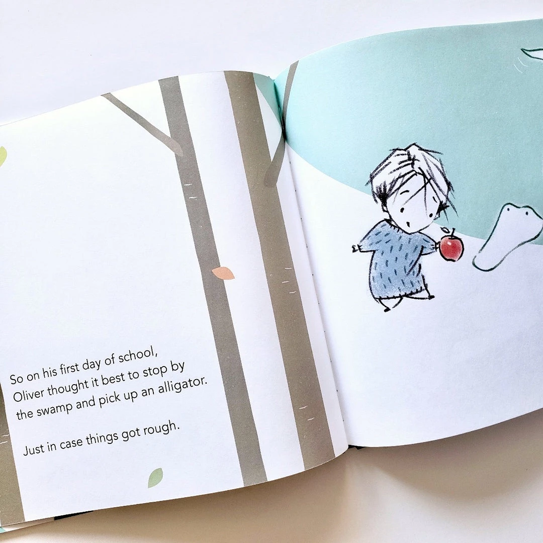 Oliver is nervous about the first day of school, so he picks up an alligator at the swamp, just in case. And boy, does it come in handy! Whenever anything scares Oliverโbe it a teacher, a classmate, or the prospect of learningย everythingโthe alligator makes the problem go away. Quickly, school becomes much simpler . . . and a little lonely. But Oliver knowsย justย what to do!