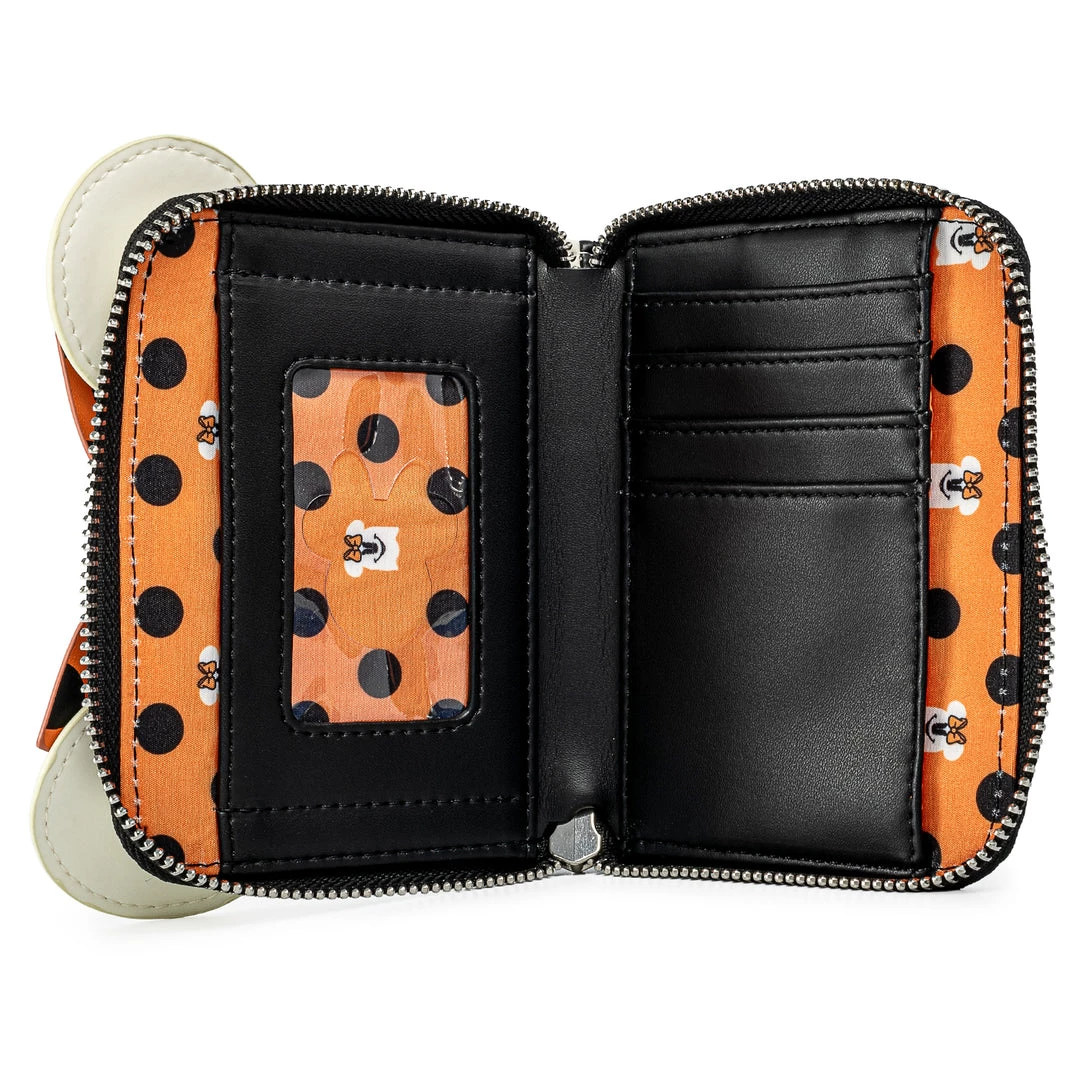 This Minnie walletΒ glows in the dark and perfectly matches the Loungefly Minnie Mouse mini backpack! Minnie isΒ cute and spooky as a ghostΒ with a black and orange polka-dot bow.